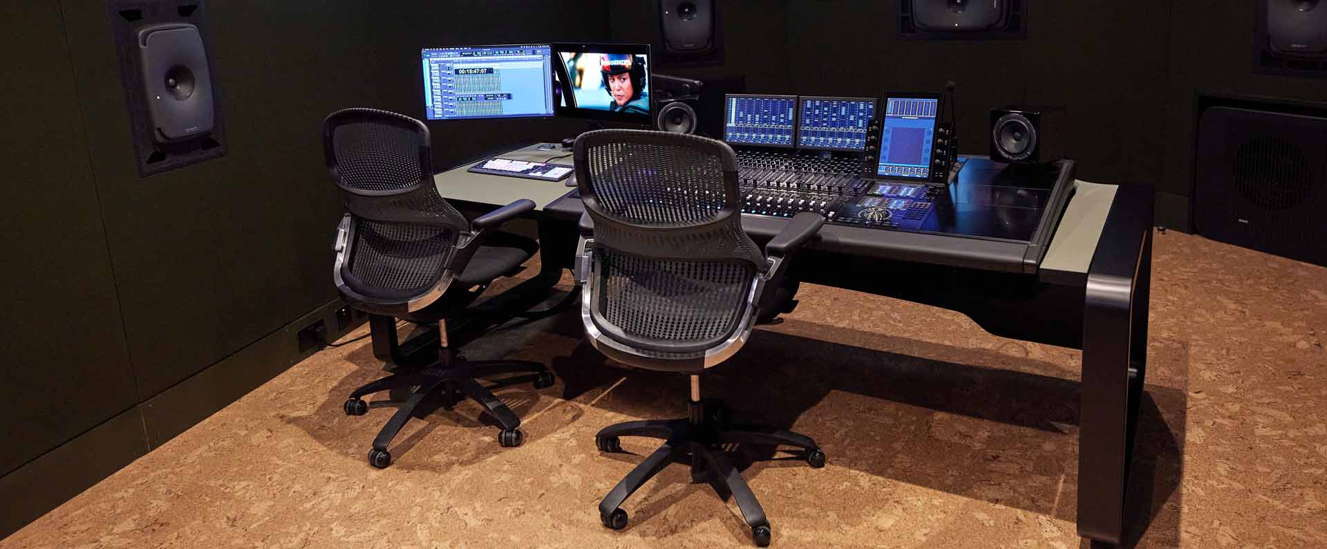 AKA were fortunate enough to be involved with this new boutique Post Production facility in the heart of East London’s creative community. We were brought on board at the very early design stages and were tasked with designing studio furniture for both their gorgeous Dolby Atmos Theatrical sound stages. We also designed and supplied multipurpose furniture for their five Dolby Atmos and Dolby Vision ready suites. This enables Mixing, Grading and Editing in the same space in amazing HETV and Dolby quality. The S6 desks have client positions at both ends, finished in solid and veneered Walnut over an aluminium space frame with acoustically transparent removable vanity screens.