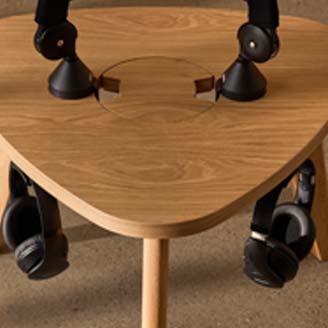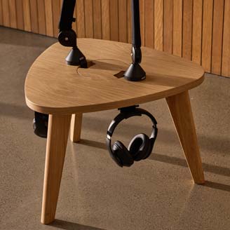 The ProVoice Mini is a compact, stylish podcast coffee table designed to create a relaxed, intimate setting for natural conversation. Perfectly sized for a sofa or comfy lounge seat, it blends functionality with comfort, offering a cozy centerpiece for casual podcasting sessions. Its low-profile design encourages laid-back body language and authentic dialogue, making conversations feel more organic and less like a formal studio setup. Whether it’s holding microphones, coffee mugs, or recording gear, the ProVoice Mini turns any comfortable seating area into a warm, inviting podcast space that feels more like a living room chat than a broadcast studio.