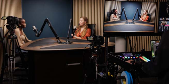 The desk features apertures designed to accommodate any arm mounted on a desk clamp, such as the Rode arm. This universal design ensures that us-ers are not limited to a specific brand and can utilise a variety of equipment based on their needs.