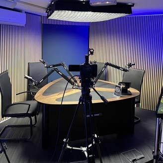 The ProVoice V6 is our largest podcast desk, ideal for conversational podcasts with up to six guests or as a four-person presenter desk for live streaming, content creation, and broadcast. It offers exceptional flexibility for any studio setup while incorporating all the hallmark features of the ProVoice range, including inlaid acoustic pads for superior sound quality, a robust steel frame for stability, real wood-veneered desktops, and universal mic mounting points compatible with most mic arms. Available in a wide selection of finishes and colours, the desk can be tailored to complement your studio’s aesthetic while providing a professional, functional, and comfortable workspace for multiple hosts or presenters.